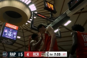GIF-楊瀚森被沖擊吹了防守犯規
