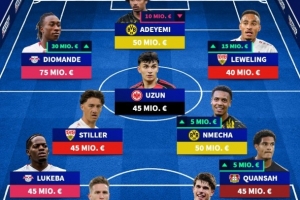 前鋒:迪奧曼德(萊比錫,7500萬歐)、阿德耶米(多特,5000萬歐)、勒威林(斯圖加特,4000萬歐)
