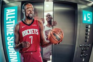本場(chǎng)比賽截至發(fā)稿,杜蘭特已經(jīng)砍下27分,他的生涯總得分就此超越喬丹,升至NBA歷史第五位!