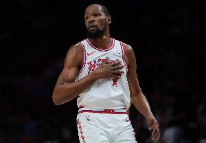 體育資訊3月22日訊 NBA常規賽,火箭主場123-122險勝熱火。賽后杜蘭特接受采訪。