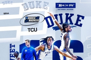 體育資訊3月22日訊 今天結束的一場NCAA錦標賽,杜克大學81比58擊敗德州基督教大學,晉級甜蜜16強。
