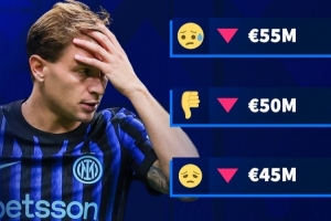 現(xiàn)年29歲的巴雷拉本賽季為國(guó)米各項(xiàng)賽事出戰(zhàn)35場(chǎng),收獲1球7助。他目前的身價(jià)為6000萬(wàn)歐,巔峰身價(jià)則是兩年前的8000萬(wàn)歐。此次下跌,將是巴雷拉的身價(jià)4連跌。