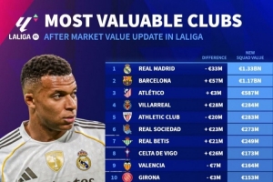 西甲球隊德轉(zhuǎn)身價變化:巴薩增加5700萬歐,皇馬下跌3300萬歐