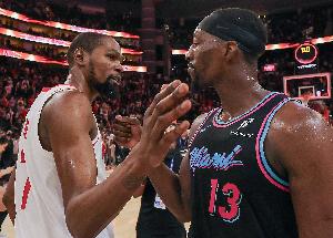 體育資訊3月23日訊 NBA常規賽,火箭123-122力克熱火。杜蘭特生涯總得分超越喬丹,上升至NBA歷史第五。