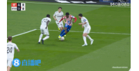 體育資訊03月23日訊 西甲第29輪馬德里德比,皇馬vs馬競,第8分鐘,盧克曼禁區內想從呂迪格和卡瓦哈爾之間鉆過,但在突破過程中倒地!