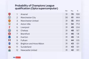 目前英超第五名能否獲得下賽季歐冠資格尚未確定