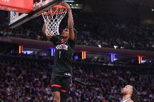 談到阿門本場獲得14次罰球(命中10個),烏度卡說:“他們緊貼凱文(杜蘭特),當凱文和其他人做掩護時,那位球員就能獲得突破下順的機會。我喜歡他終結的方式,很多是雙腳起跳的內線觸球,就像你提到的,他能夠到達自己的攻擊點。面對謝德和奎克利這樣的小個后衛,他某種程度上展現了自己的統治力。所以不只是防守端的身體對抗,進攻端也是。球員們能夠殺入內線,賈巴里也有幾次不錯的突破。但我很欣賞他終結的方式以及對抗下完成進攻的表現,當你這樣做時,自然會獲得大量的罰球。”