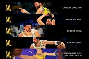 體育資訊3月25日訊 今天,湖人官方曬出了東契奇的幾項(xiàng)數(shù)據(jù)記錄,并寫(xiě)道:“數(shù)據(jù)不會(huì)說(shuō)謊。”詳情如下: