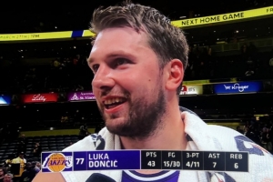 體育資訊3月26日訊 NBA常規賽,湖人客場137-130擊敗步行者,東契奇賽后在場邊接受了媒體采訪。