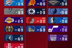 今日的NBA常規賽全部結束,讓我們繼續一起來關注最新排名: