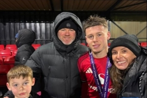 現年16歲的凱·魯尼目前效力曼聯U16隊,他幫助球隊在英超聯賽盾杯決賽中2-0戰勝伯恩利奪冠,魯尼與妻子科琳現場觀戰。