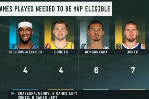 備注:亞歷山大、東契奇、文班亞馬所在球隊常規賽還剩9場,約基奇還剩8場
