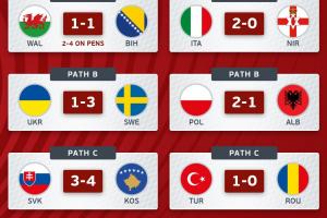 世預(yù)賽歐洲區(qū)附加賽半決賽綜述: