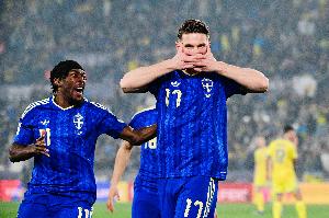體育資訊3月27日訊 世預(yù)賽歐洲區(qū)附加賽半決賽,瑞典3-1擊敗烏克蘭晉級(jí),約克雷斯戴帽,伊蘭加賽后稱贊了這位前鋒的表現(xiàn)。