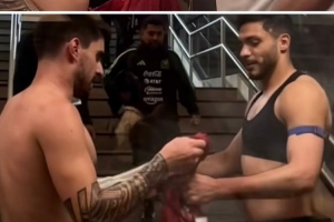 比賽結(jié)束之后,勞爾·希門尼斯與魯本·內(nèi)維斯互換球衣,兩人曾在狼隊共事