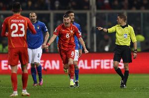 2022年3月,世界杯附加賽半決賽,意大利補(bǔ)時(shí)遭絕殺,0-1爆冷不敵北馬其頓,無緣2022卡塔爾世界杯。那場比賽的主裁判,正是法國主裁蒂爾潘。