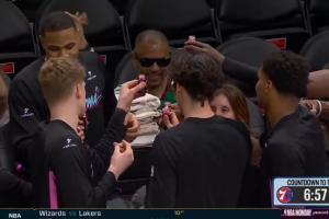 GIF-熱火眾將賽前“聚眾”喝電解質(zhì)