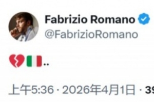 賽后,意大利名記羅馬諾發布社交媒體,心碎的表情配上意大利國旗。