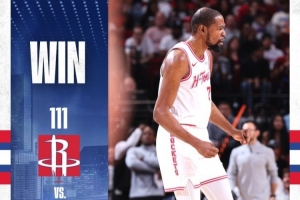 火箭官方發(fā)布本場比賽贏球海報(bào),封面人物為杜蘭特。