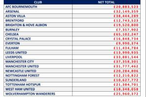 英超各隊支付給經紀人的傭金↓
