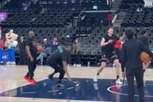 體育資訊4月1日訊 NBA常規賽,開拓者卡位戰客場114-104擊敗快船。賽前有鏡頭捕捉到楊瀚森在熱身時撞倒了黑人助教。