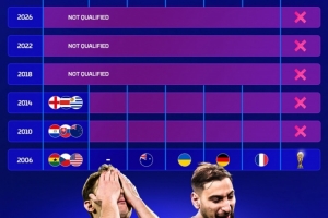 體育資訊4月2日訊 世預(yù)賽附加賽決賽,意大利點(diǎn)球大戰(zhàn)不敵波黑,連續(xù)三屆無緣世界杯。德國轉(zhuǎn)會市場盤點(diǎn)了2006年以來意大利的世界杯成績。