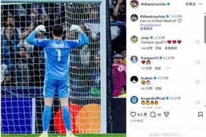 庫爾圖瓦社媒曬出比賽中慶祝的照片,配文:“這就是皇馬!”