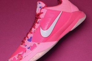 這雙Kobe 5 PE “Jordyn”顧名思義,靈感來源于他的女兒Jordyn,而配色和愛心圖案則是取自他女兒的一件衣服圖案,球鞋的后跟還有女兒的出生日期。