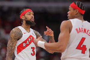體育資訊4月8日訊 NBA常規(guī)賽,猛龍主場(chǎng)121-95大勝熱火。
