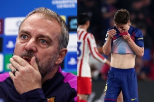 巴薩主帥弗里克接受媒體的采訪時說道:“加維哭了?他已經拼盡全力。他在下半場的表現非常出色?!?/p>
