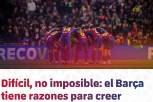 體育資訊4月9日訊 歐冠1/4決賽首回合比賽,巴薩主場0-2不敵馬競。巴薩官網(wǎng)發(fā)表了一篇文章,認為球隊想要逆轉并非不可能,紅藍軍團仍有理由相信晉級歐冠半決賽。