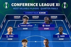 德轉公布歐協聯1/4決賽身價最高十一人:水晶宮獨占九席
