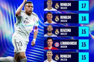 體育資訊04月10日訊 本賽季皇馬前鋒姆巴佩在10場(chǎng)歐冠中已經(jīng)打進(jìn)14球,歐冠官方曬出了歐冠歷史單賽季進(jìn)球排行榜,姆巴佩暫時(shí)排在第6。同時(shí)歐冠官方發(fā)出提問:姆巴佩能升到多高的位置?