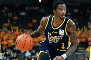 上半場(chǎng),廣東外援薩姆納14分3板6助,奎因13分2板1助。