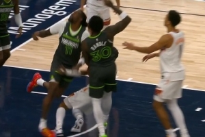 GIF-里德封蓋落地時踩到古德溫腳崴腳 暫時返回更衣室