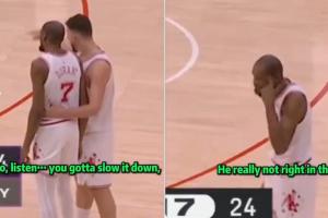 GIF-申京指點(diǎn)杜蘭特,杜蘭特隨后攤手+搖頭,還對場邊方向抱怨地指了指自己的頭